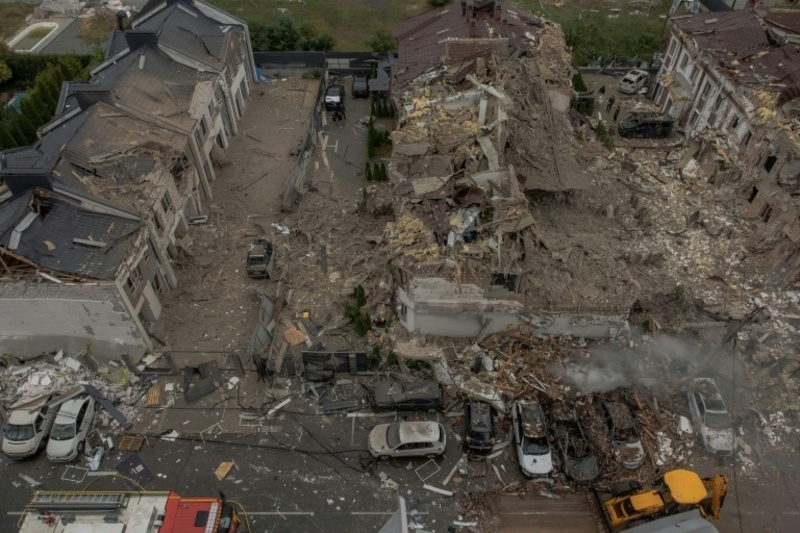 Zerstörte Wohnhäuser in einem Vorort von Kiew