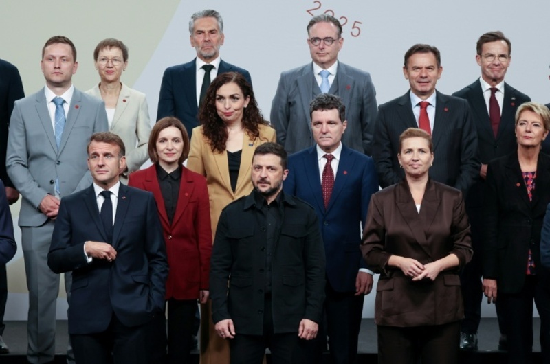 Selenskyj (M.) mit Macron (l.) und Frederiksen (r.) in Kopenhagen