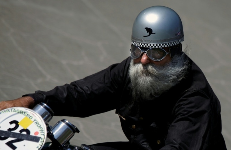 Älterer Motorradfahrer bei einer Show in Ungarn