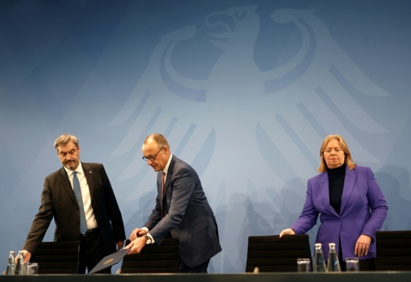 Parteichefs Söder, Merz und Bas nach Ausschuss im Oktober