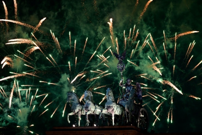 Feuerwerk über dem Brandenburger Tor in Berlin