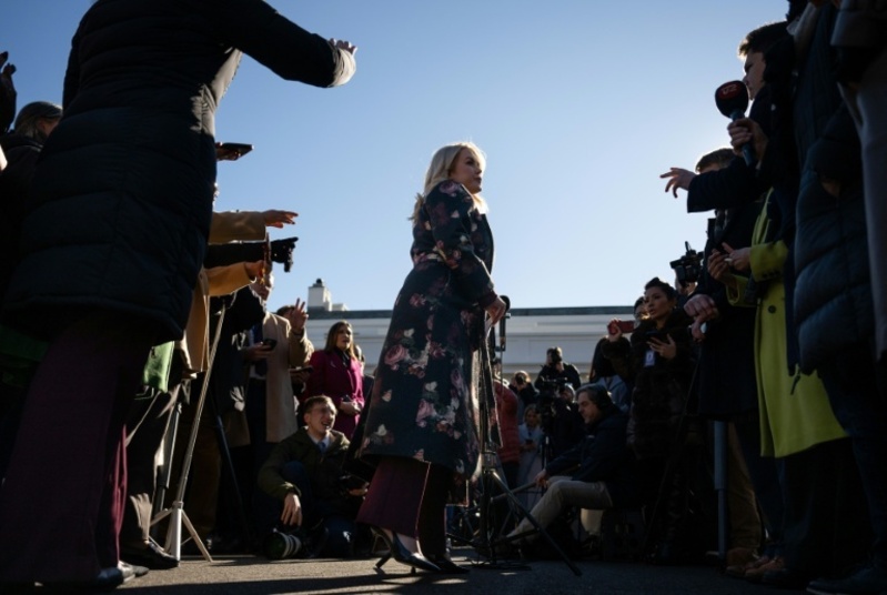 Trump Sprecherin Karoline Leavitt im Gespräch mit Reportern
