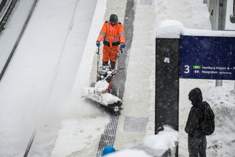 Mitarbeiter des Winterdienstes und Pendler in Hamburg