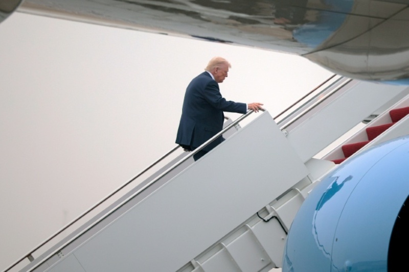 Trump beim Einstieg in ein Flugzeug