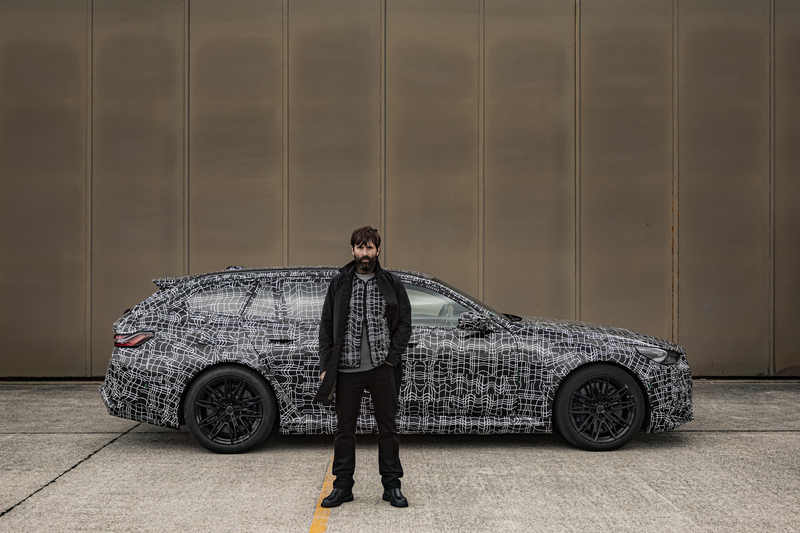 Die Erlkönig-Tarnung des BMW M5 Touring gibt es jetzt auf der Kleidung Foto: BMW