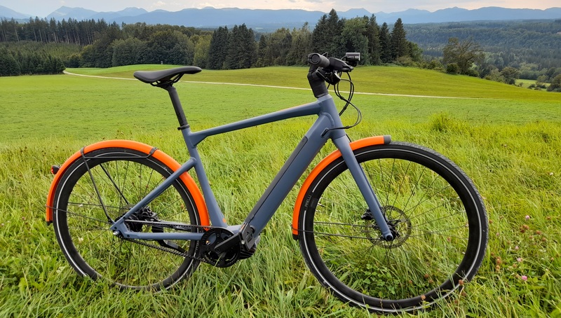 Schicker Stadtcruiser aus der Schweiz: Das BMC 257 AMP One in der Lackierung Powder Steel Blue und Orange Foto: Rudolf Huber/SP-X