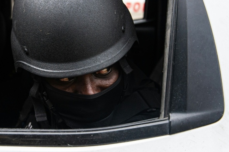 Polizist bei Patrouille in Vorort von Port-au-Prince