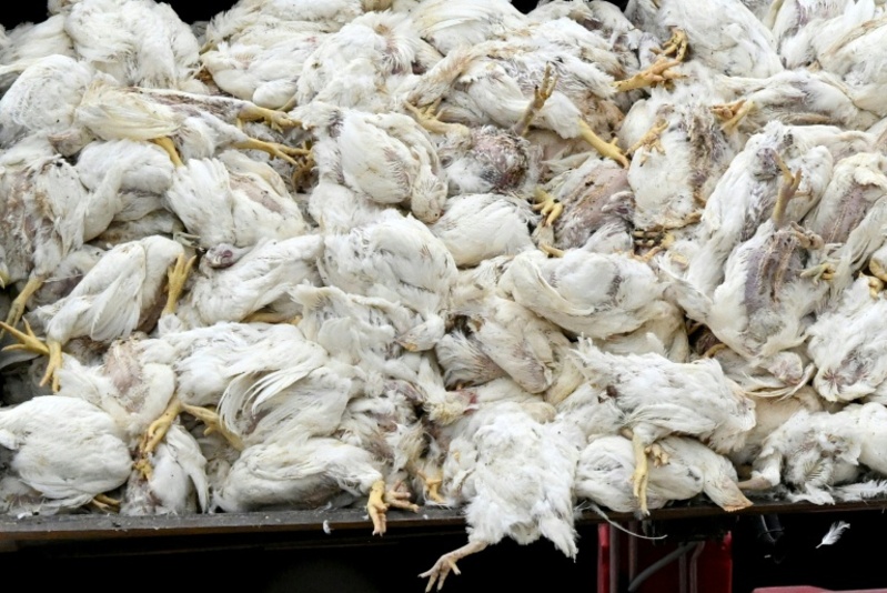 Tote Vögel in einem Container in Neutrebbin am 27. Oktober
