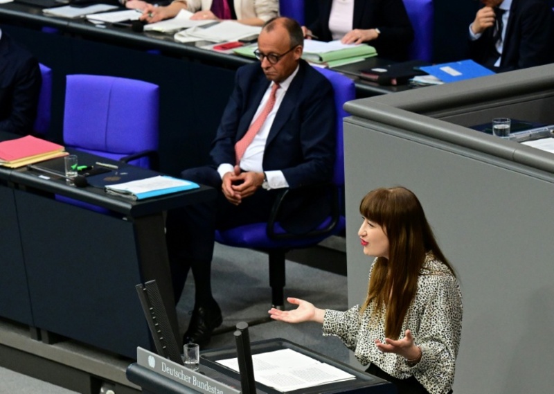 Linken-Fraktionschefin Reichinnek und Merz im Bundestag