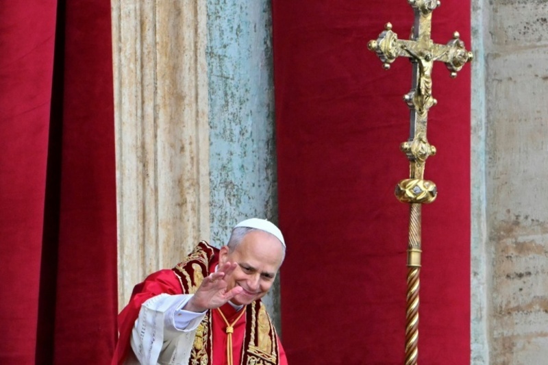 Papst Leo XIV. grüßt von der Loggia des Petersdoms