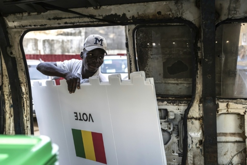 Wahlhelfer verlädt Kabinen für Präsidentenwahl in Guinea