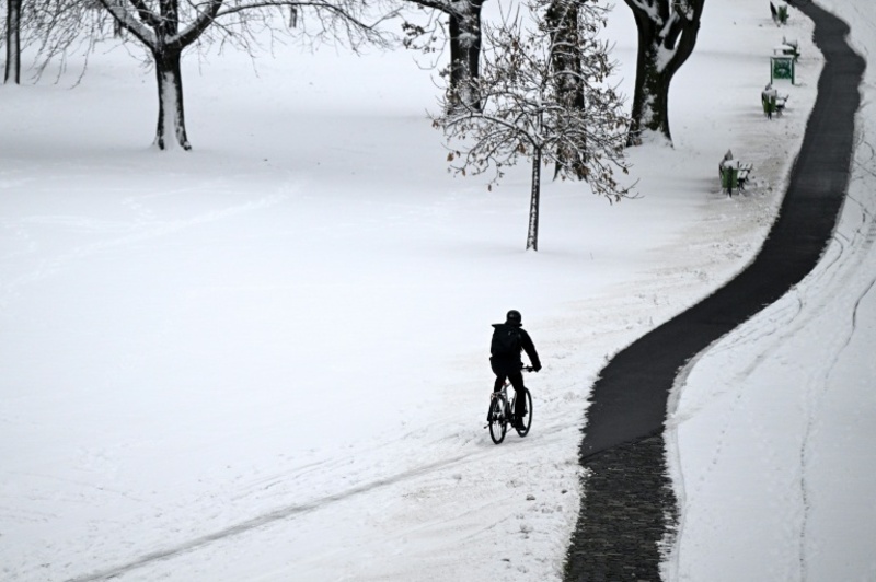 Radfahrer im Schneen