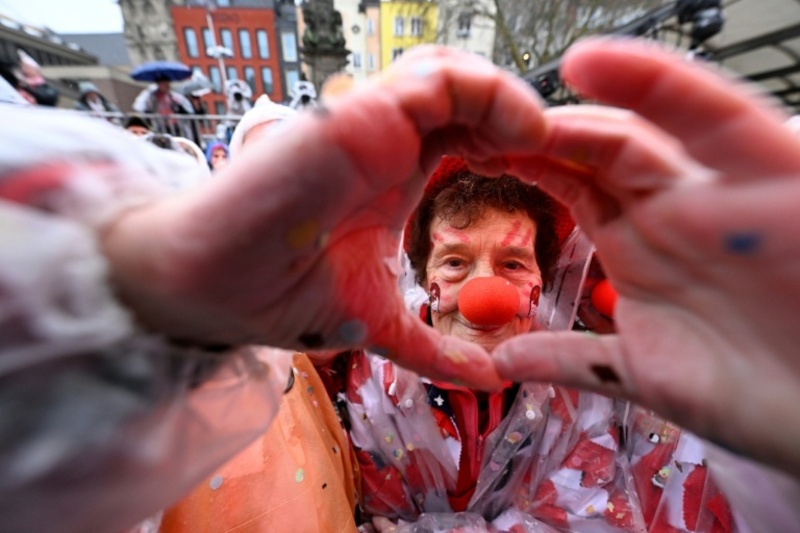 Narren und Jecken am Rhein feiern Beginn von Straßenkarneval mit Weiberfastnacht