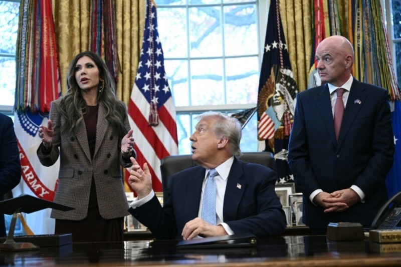 Noem, Trump und Infantino bei einem Treffen im Weißen Haus