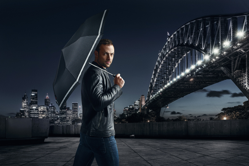 Beim Taschenschirm T.200 medium Duomatik von Knirps leuchten bestimmte Bereiche des Schirmdachs auf, wenn sie angestrahlt werden Foto: Knirps