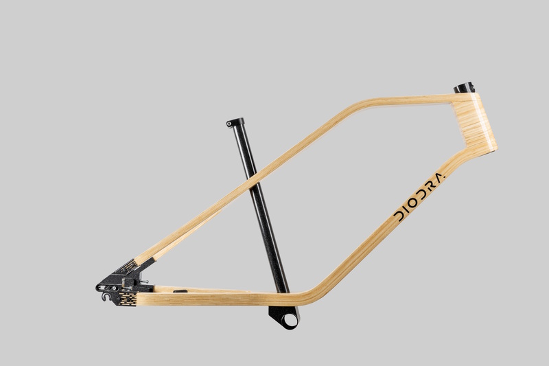 Diodra setzt beim Rahmenbau auch auf Metallelemente. Unter anderem die Sattelstütze samt der Aufnahme für das Tretlager sind aus Aluminium Foto: Diodra