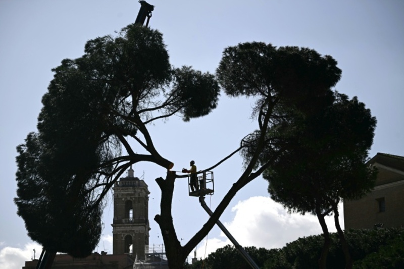 Ein Baum in der Nähe des Colosseums wird gefällt