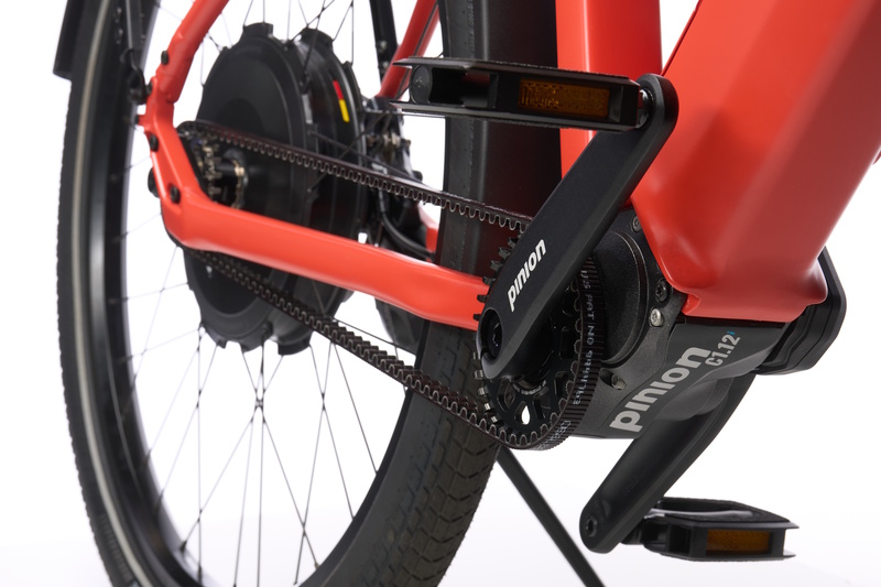 Die Kombination aus Mittelgetriebe, Riemenantrieb und Heckmotor ist sauber und formschön Foto: Möve Bikes