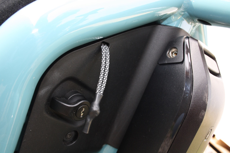 An der Flex-Box gibt es ein Schloss sowie zwei dieser Textilbänder, mit denen sich die Deckelhälften entriegeln lassen Foto: SP-X/Mario Hommen