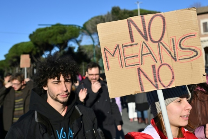 Plakat auf Demonstration gegen Gewalt gegen Frauen