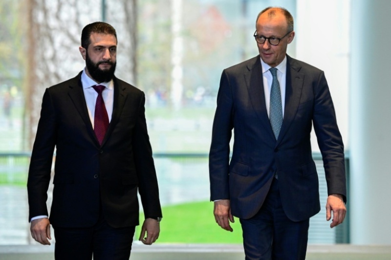 Syrischer Übergangspräsident al-Scharaa (l.) und Merz