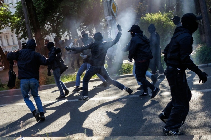 Steinewerfer bei linker Demonstration in Leipzig