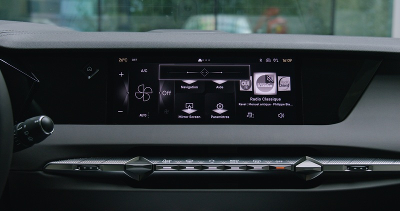 Auf das Kommando ,,OK Iris" oder über die Lenkradtaste öffnet sich ein dezentes Fenster mit Kristall-Logo im zentralen Touchscreen - und die Unterhaltung kann losgehen Foto: DS