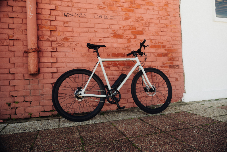 Die kleine E-Maschine, die sich im Hinterrad versteckt, schiebt ordentlich an Foto: Sushi Bikes/Thomas Phu
