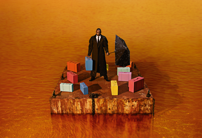 Der Mann mit den Koffern: Schauspieler Idris Elba erweist sich im neuen Pirelli-Kalender als regenfest Foto: Pirelli Kalender 2024, Prince Gyasi