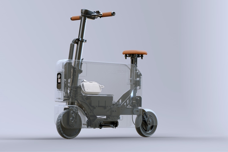 Unter der Verkleidung ähnelt der Motocompacto einem E-Scooter Foto: Honda