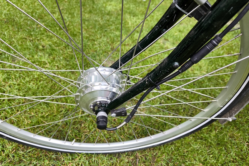 Ist das Vorderrad eingebaut, wird das Kabel zum Motor noch mit den weiteren Antriebskomponenten verkabelt Foto: SP-X/Mario Hommen